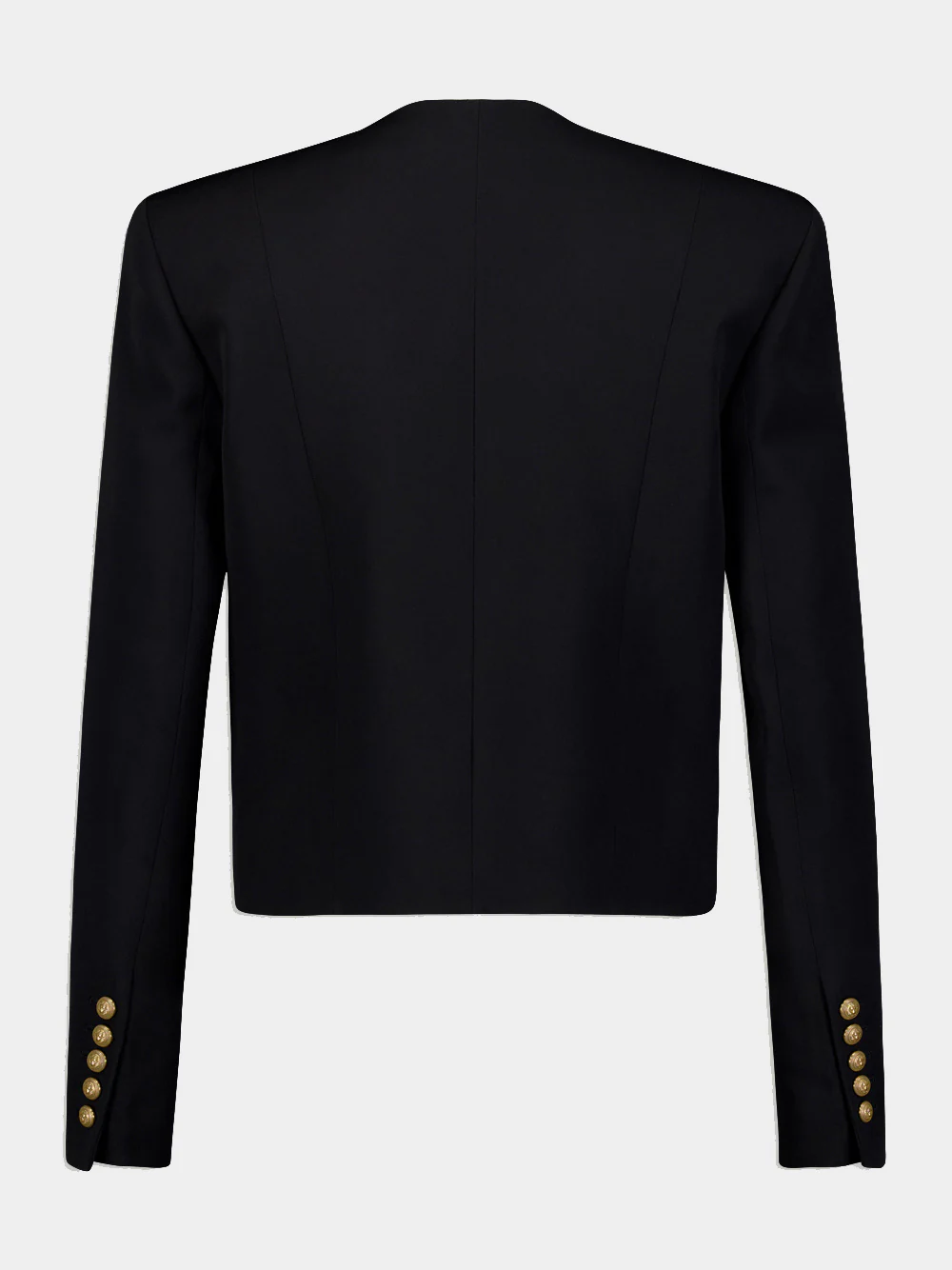 Fitted Wool Jacket, designed with an open front design and embossed gold-tone buttons. Structured with shoulder pads for a polished silhouette, this jacket boasts long sleeves with buttoned cuffs. Complete with a straight hem, it's a versatile piece that seamlessly blends fashion and function.