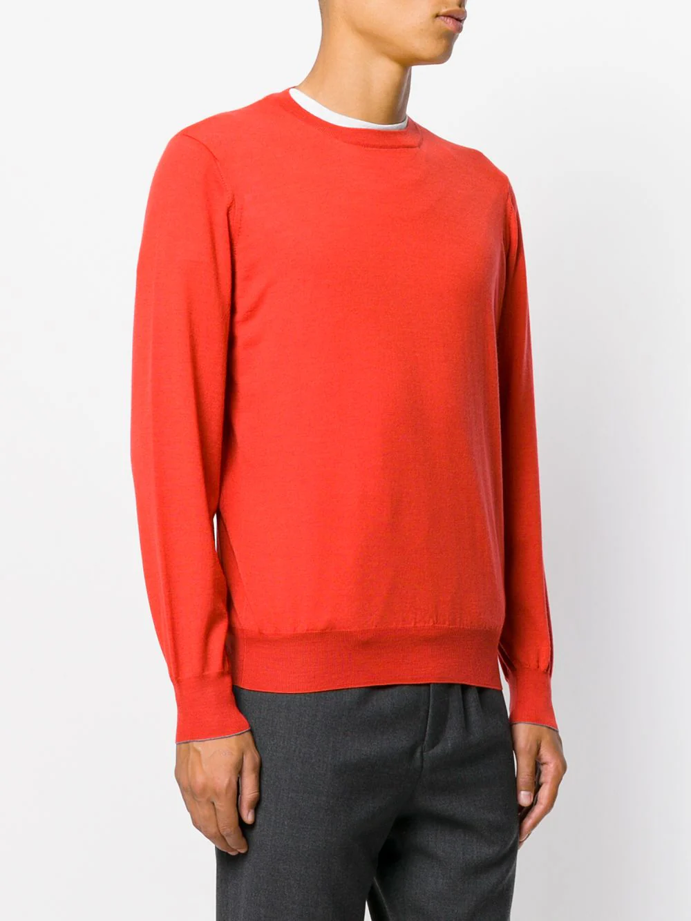 Brunello Cucinelli long-sleeved c-neck sweater with ribbed trims.