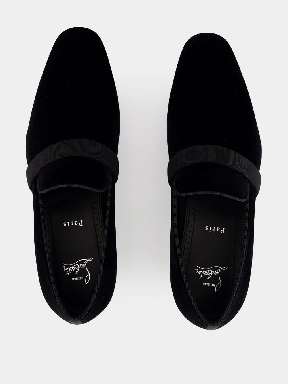 The iconic Dandydeco loafer by Christian Louboutin is crafted from black veau velours (calf suede), merging the comfort of an indoor slipper with the elegance of a city shoe. Featuring sleek lines, a minimalist upper strap, and a small square heel, this loafer embodies the Maison's refined craftsmanship and timeless sophistication.