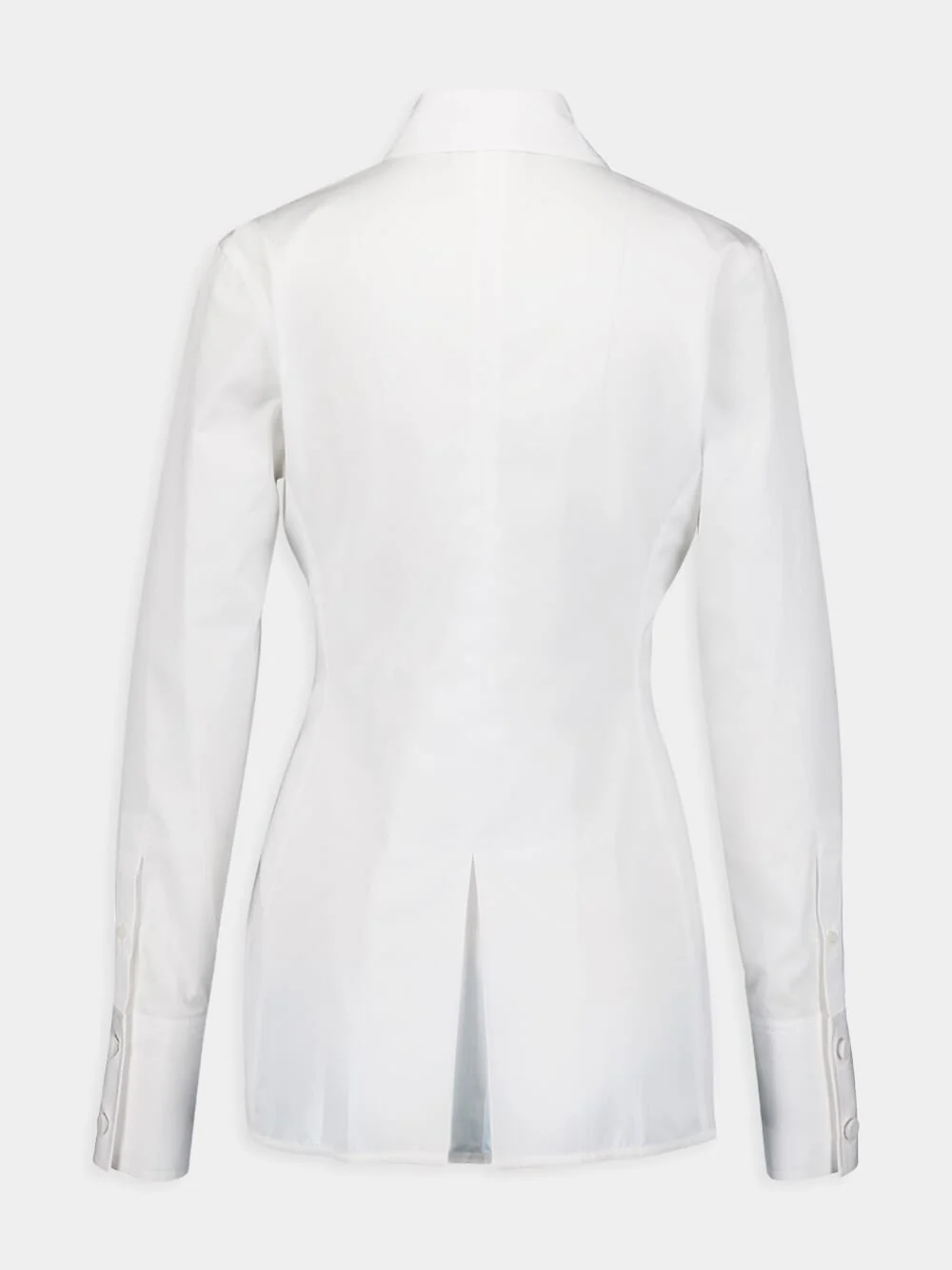 Pleated Effect Poplin Cotton Shirt, a versatile addition to your wardrobe. This long-sleeved shirt, crafted from crisp cotton poplin, exudes classic style. It features a timeless classic collar and a unique front design with pleated detailing, setting it apart from the rest. Complete with buttoned cuffs, this shirt offers a refined and polished look for any occasion.