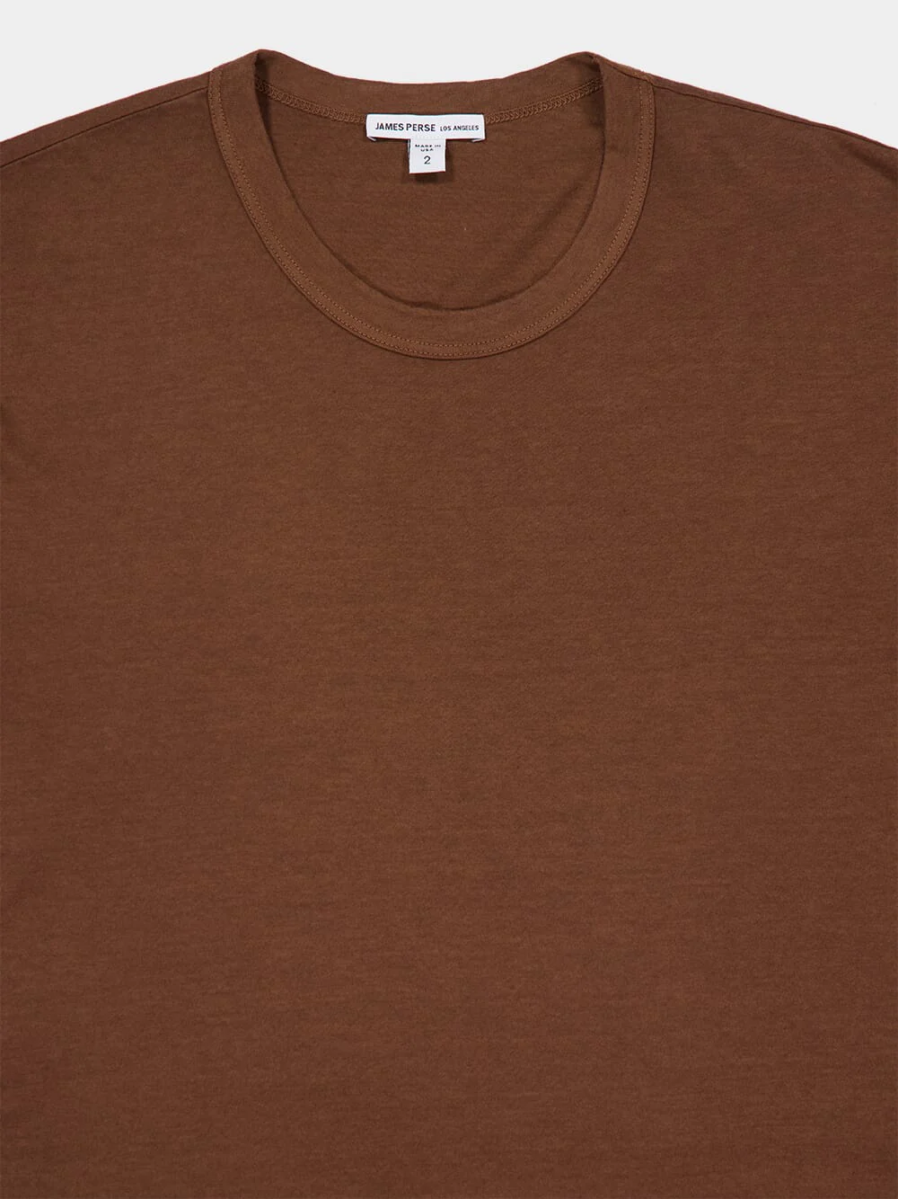 This classic fit crew neck tee in a rich gingerbread is the epitome of understated luxury. Fashioned from 100% Cotton, the jersey offers an extraordinarily soft touch due to the special treatment of Cotton fibers before spinning. The garment dyeing process, along with additional softeners, provides a soft, lived-in feel. Finished with a binded neck and clean hems, it's a perfect fusion of comfort and style.