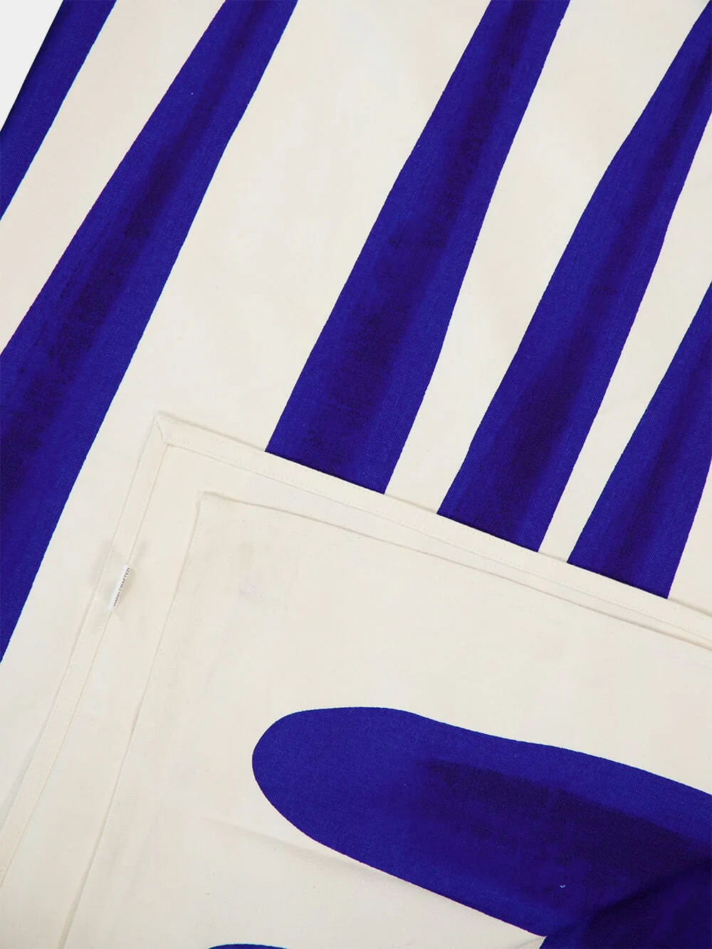 Les Ottomans handprinted white and blue cotton tablecloth.