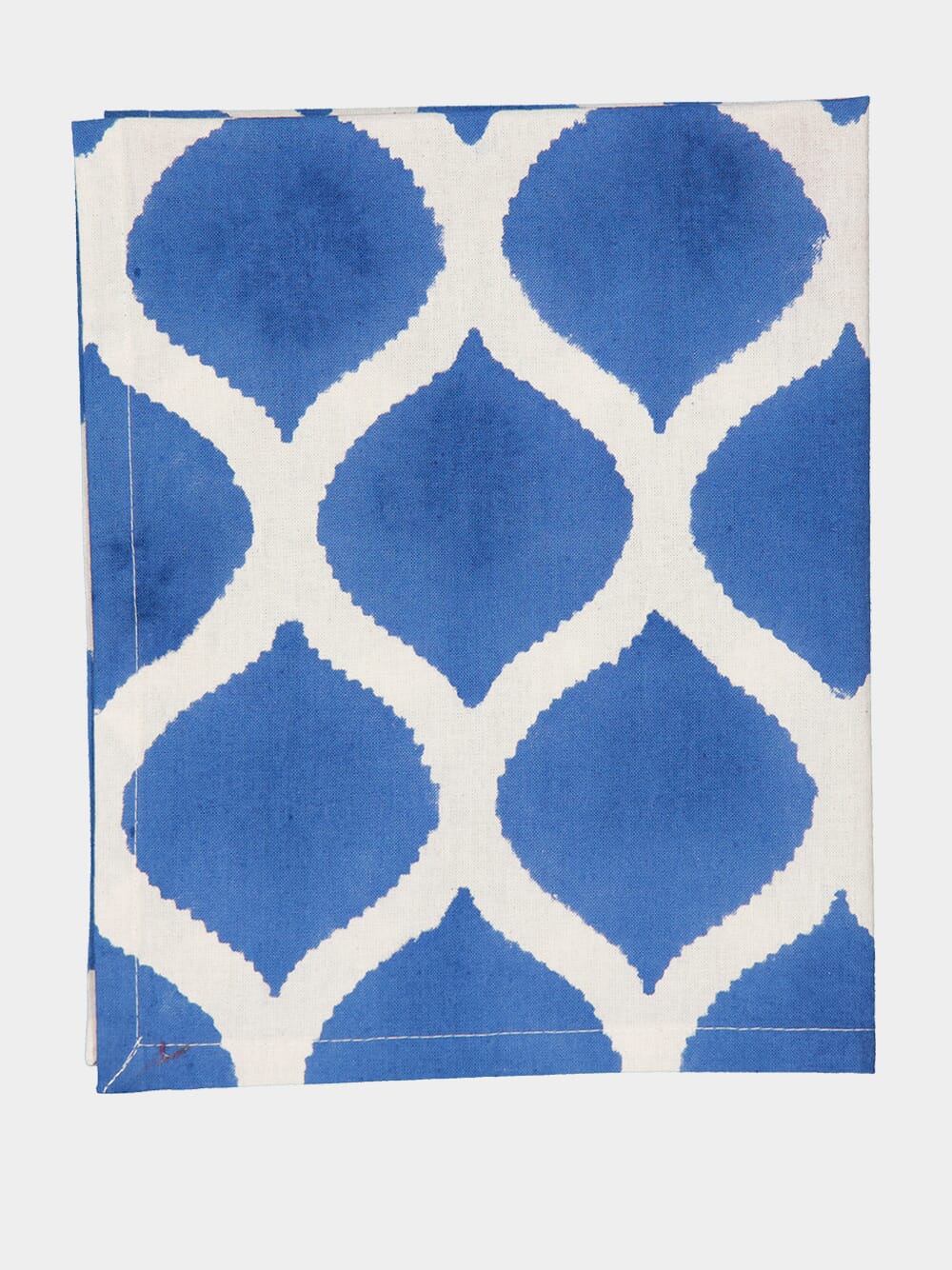 Les Ottomans blue and white cotton placemat with ikat detail.