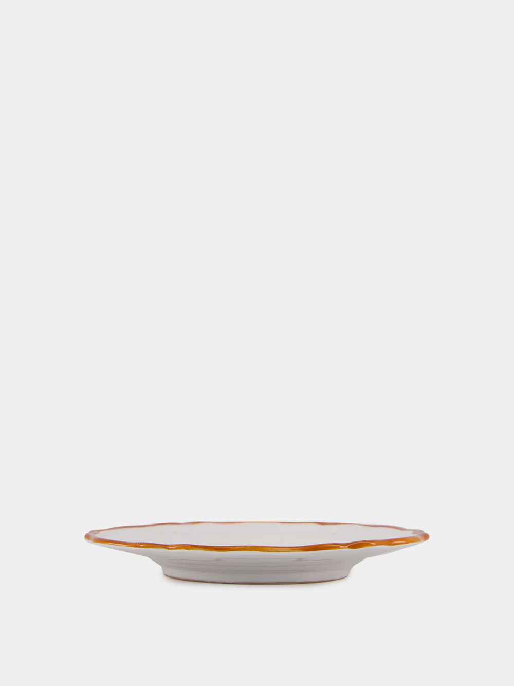 Les Ottomans La Menagerie D'ete collection, white ceramic dessert plate with yellow trim and handpainted Shell.