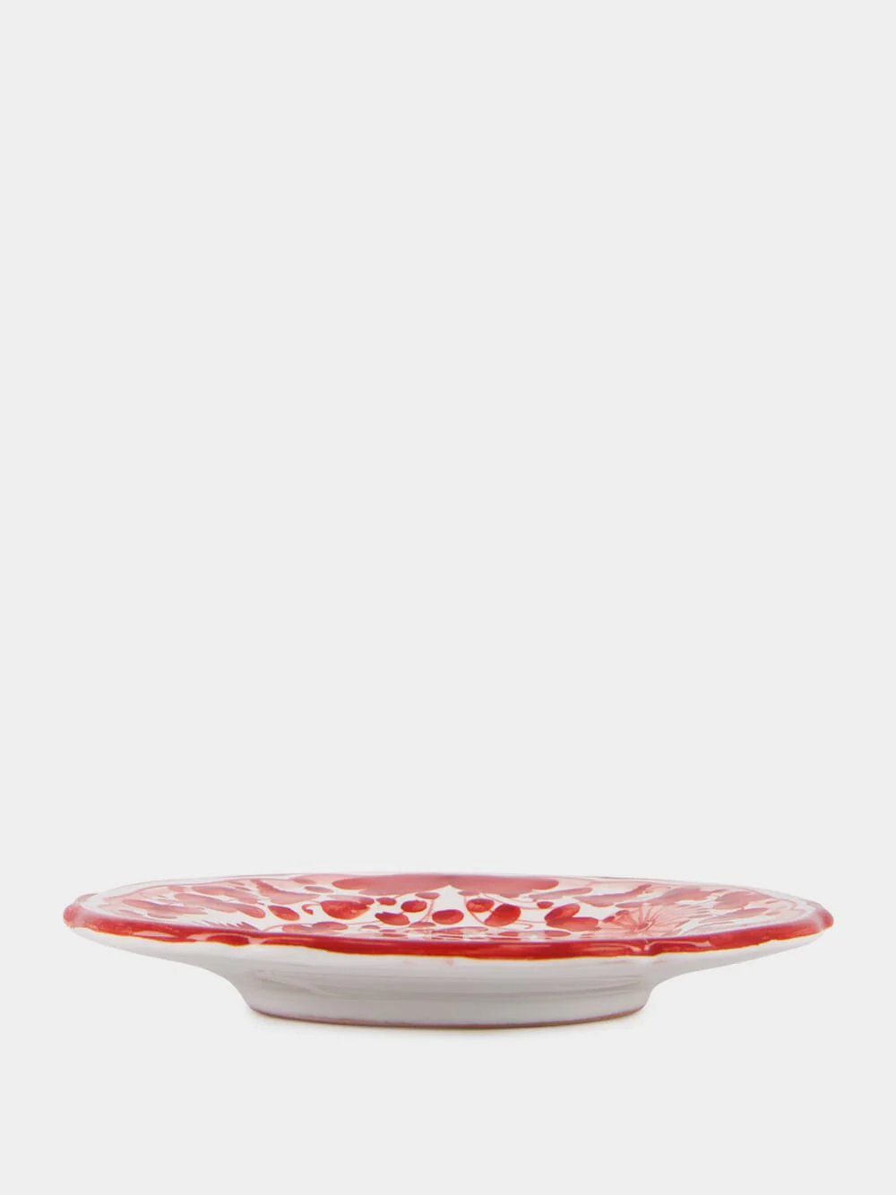 Les Ottomans Peacock red handpainted ceramic side plate.
