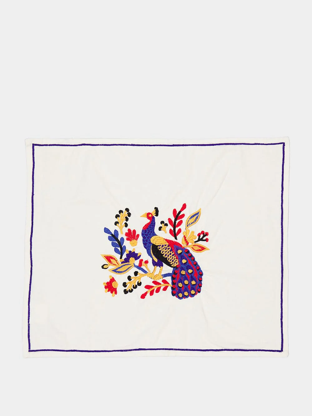 Les Ottomans Tropical embroidered peacock napkin and placemat set.
