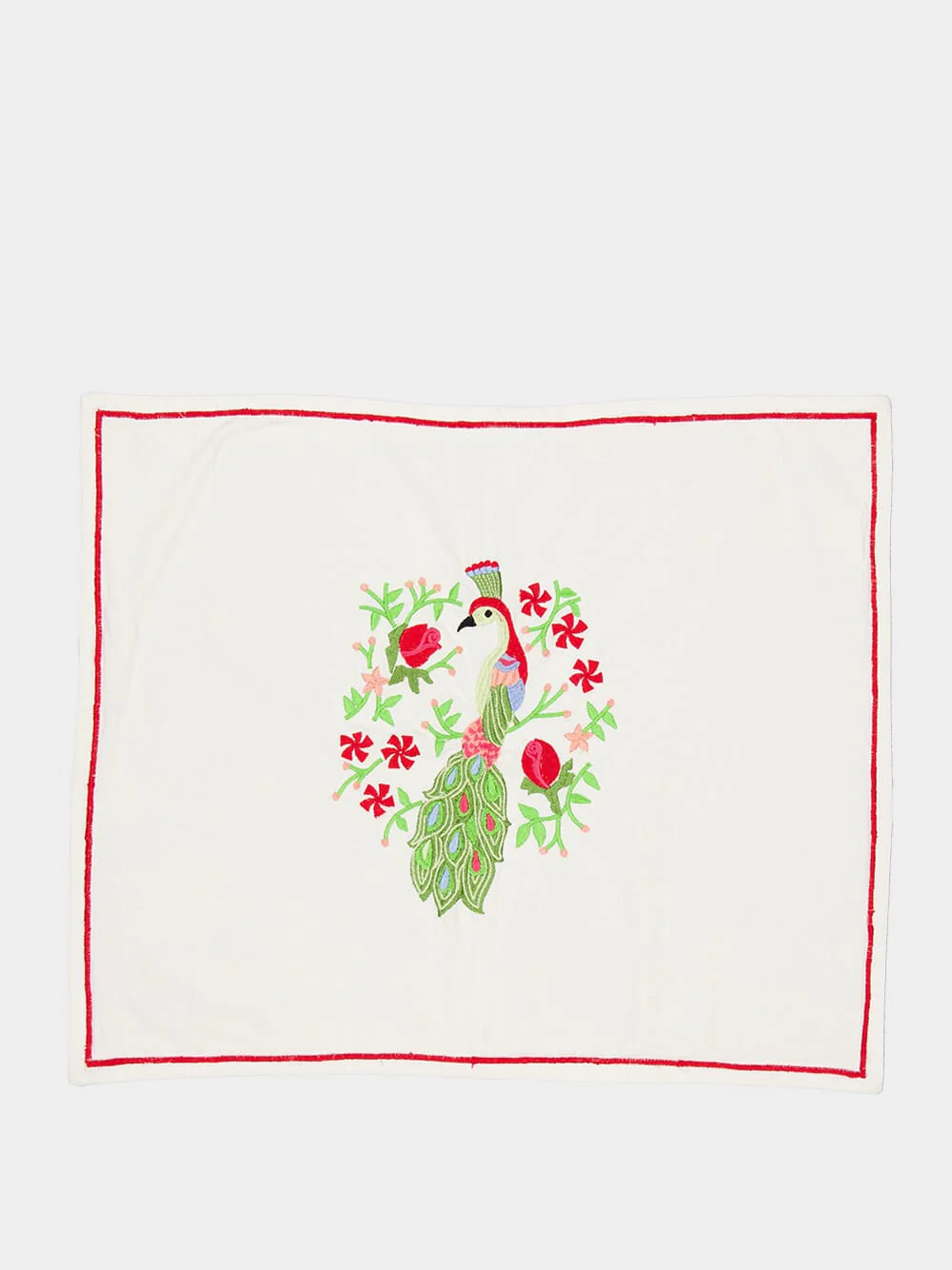 Les Ottomans Tropical embroidered peacock napkin and placemat set.